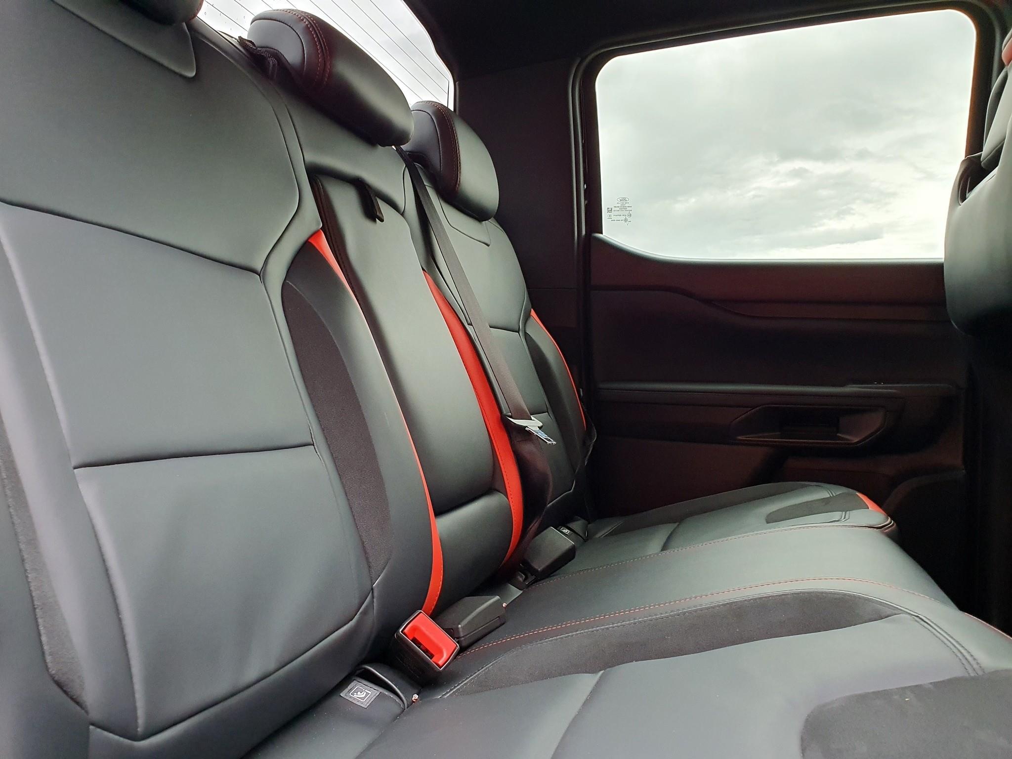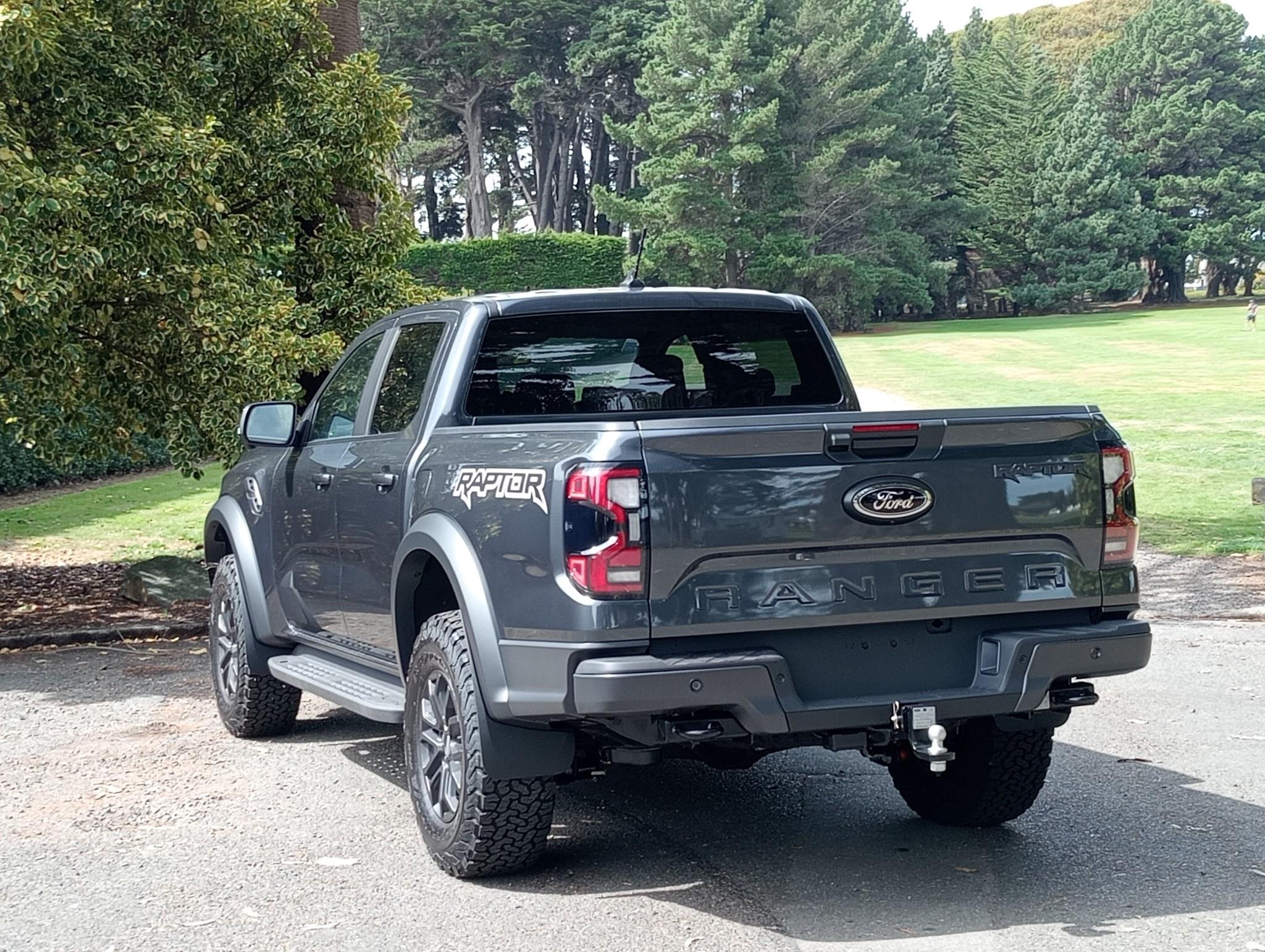 • Exterior: Aggressive styling with bold Raptor grille, flared wheel arches, and skid plates